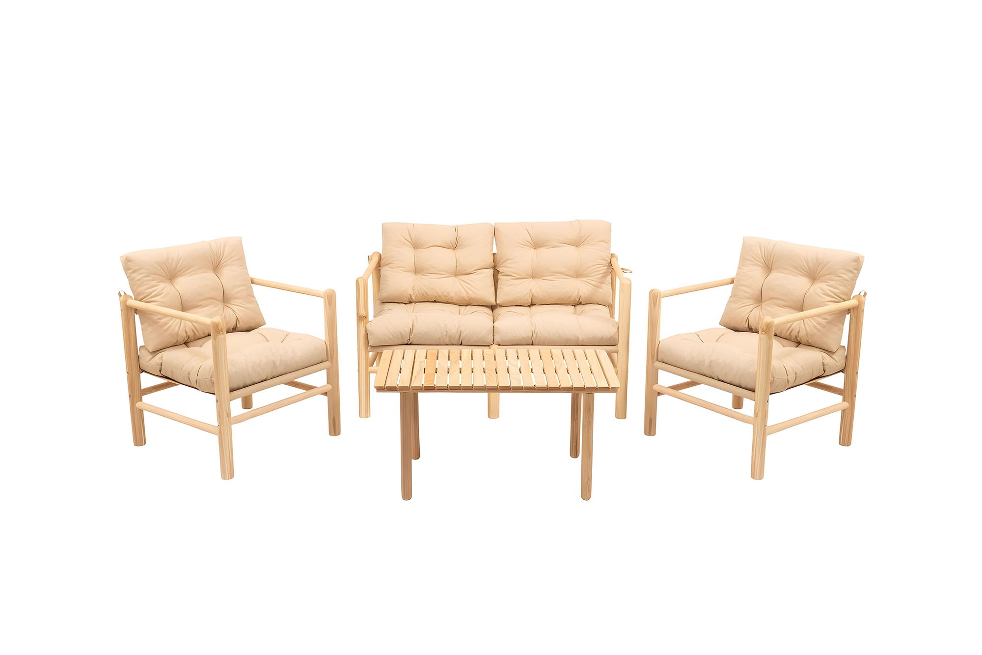 Produkt id: nordvrk-my028-udendørs-loungesæt-bord-sofa-stole-creme-hynder-natur-kastanjetræ 8683742892557