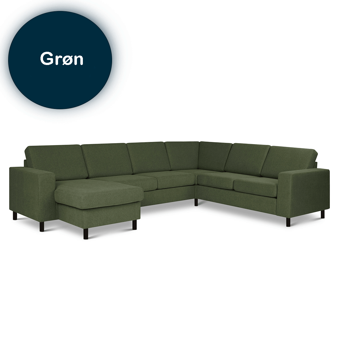 Vi har fundet Pan Sofa Vendbar Opstilling Grøn fra Lexpo hos møbelringen i kategorien . Lækker U-sofa med plads til hele familien. Pan serien er lavet i et skandinavisk design med mulighed for flere opstillinger og farver. Polstret i kraftig groftvævet møbelstof. Serien er med løse siddehynder og ryghynder, hvor betrækket kan tages af. Med h